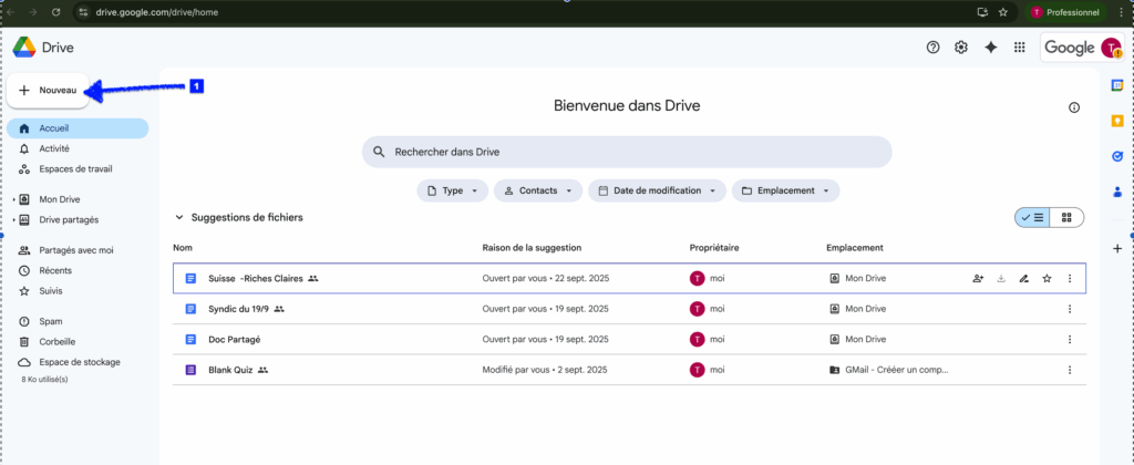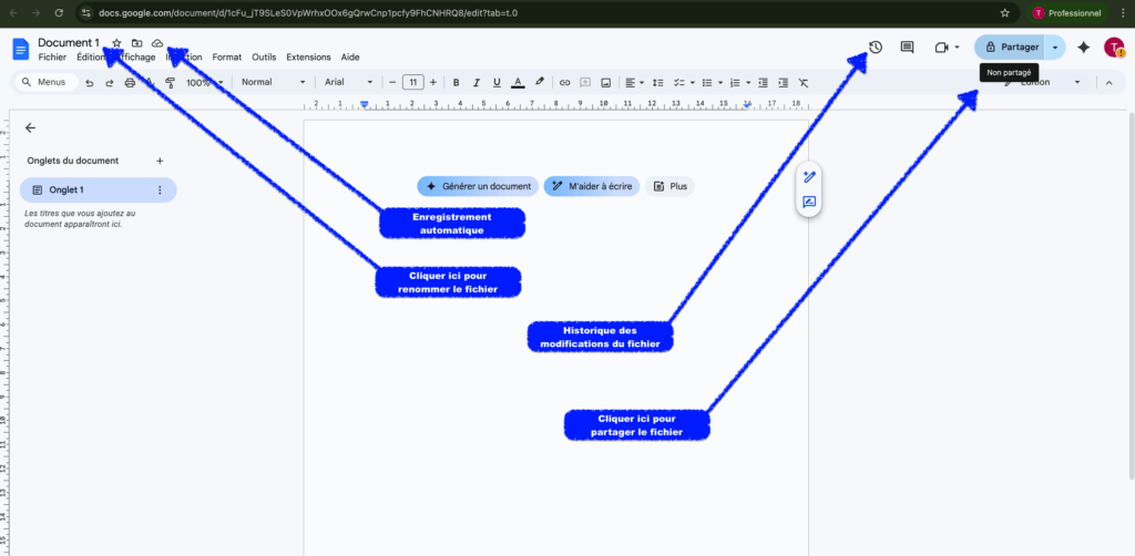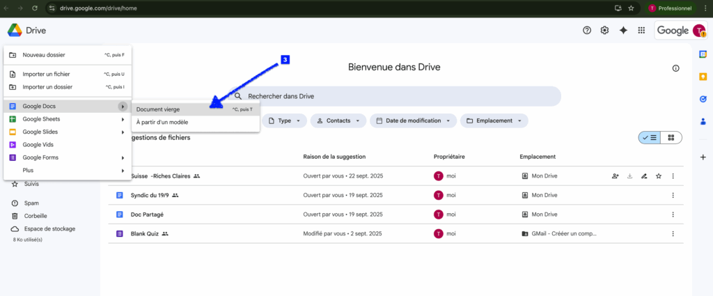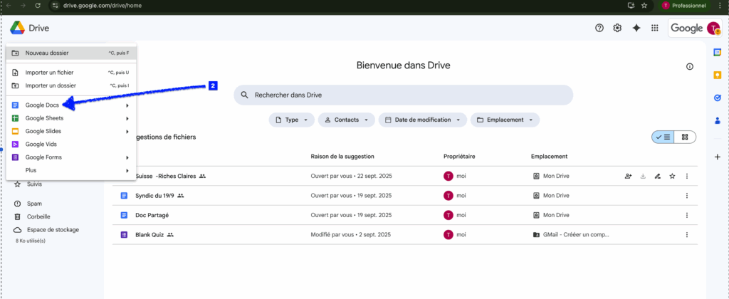 2/ Création d’un fichier Google Docs