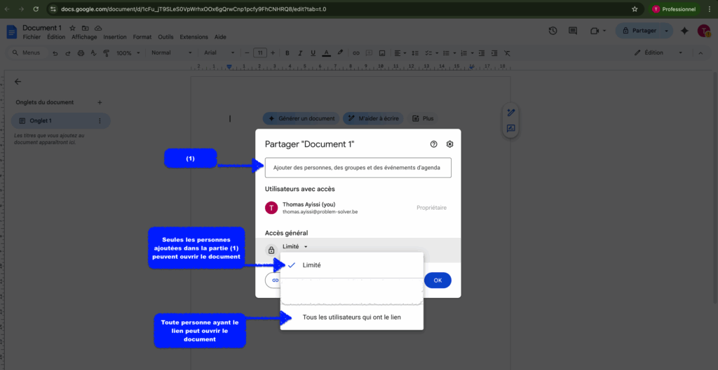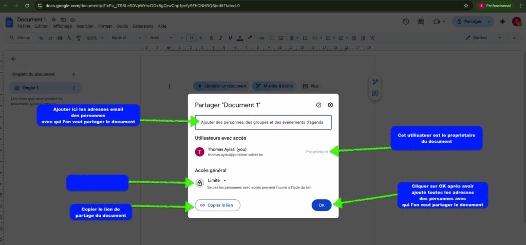 3/ Partage d’un fichier Google Docs
